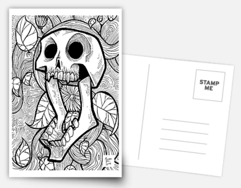 Skull, Flower, and Vines Postcard